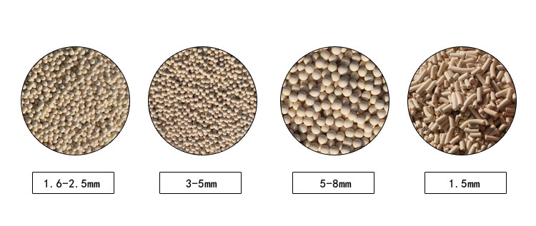其型號有:3A(鉀A型)、4A(鈉A型)、5A(鈣A型)、10Z(鈣Z型)、13Z(鈉Z型)、Y(鈉Y型)、鈉絲光沸石型等。它的吸附能力高、選擇性強、耐高溫。廣泛用于有機化工和石油化工,也是煤氣脫水的優(yōu)良吸附劑。在廢氣凈化上也日益受到重視。